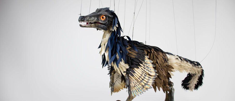 Two strings to each leg, allowing realistically sneaky walk cycle. Articulating 'Terrible Claw', authentic feathers and wings for displaying. Opening jaw, swishing tail.